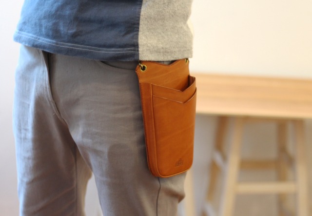 ベルトループのSカン金具の留め方と本体の形状は座る時や、歩く時のポーチの振れ方を考慮した形状になっています。