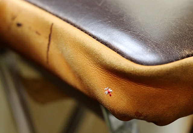 自分が働いていた時に一緒に作った革張りの椅子があります。