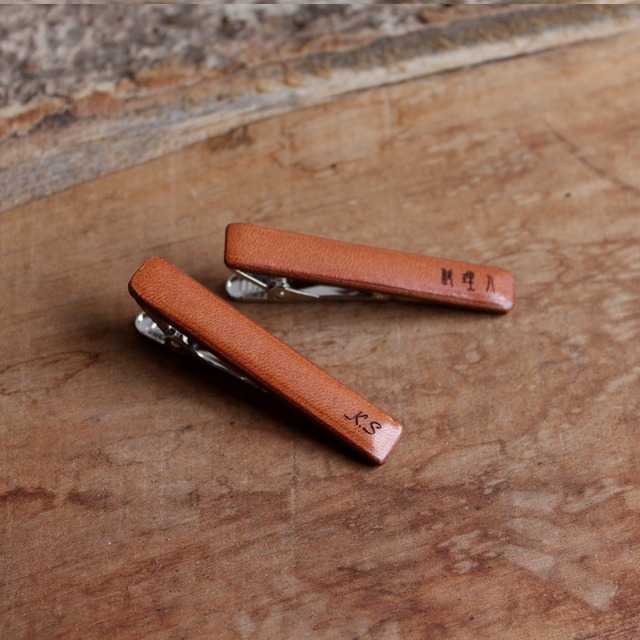 篆書体フォントの古典的な印象はレザーとの相性も良く、いつもネクタイを締めない職業の方への遊びココロのあるお洒落ギフトとしてもご利用いただけます。添付写真