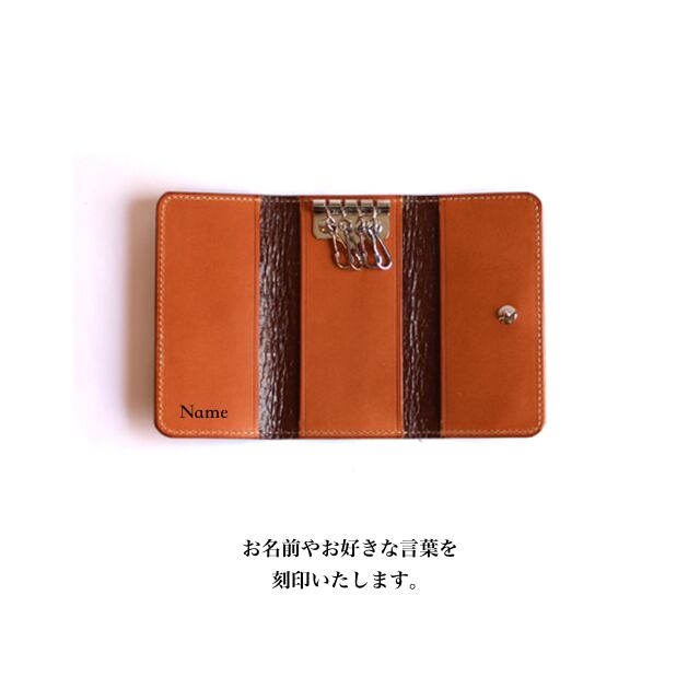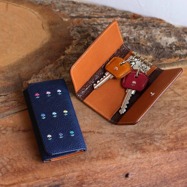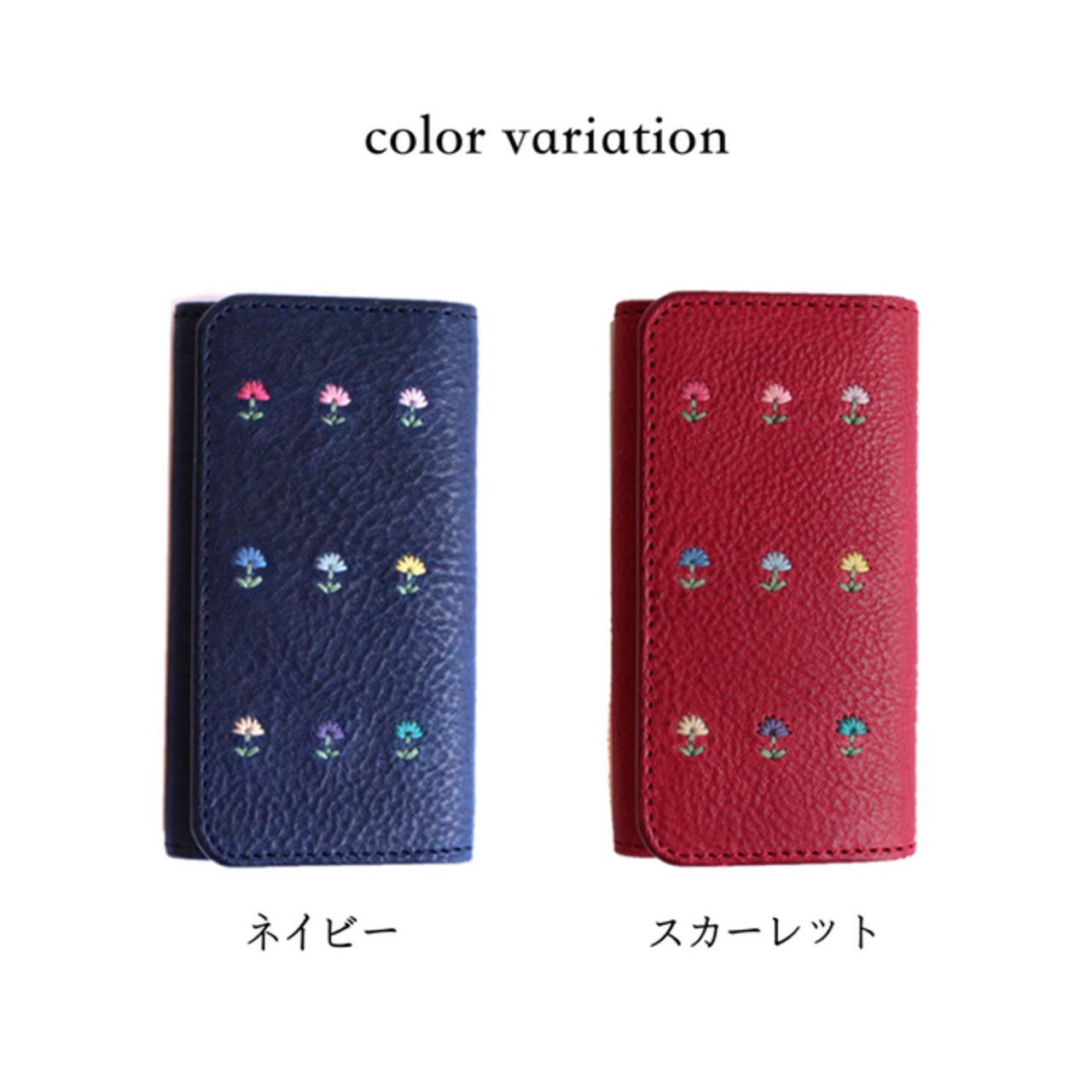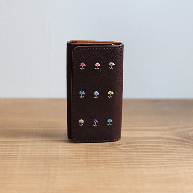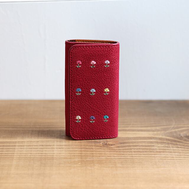 GIVING LIFEのオリジナル刺繍が贅沢に入った実用的な定番3つ折りキーケースです。