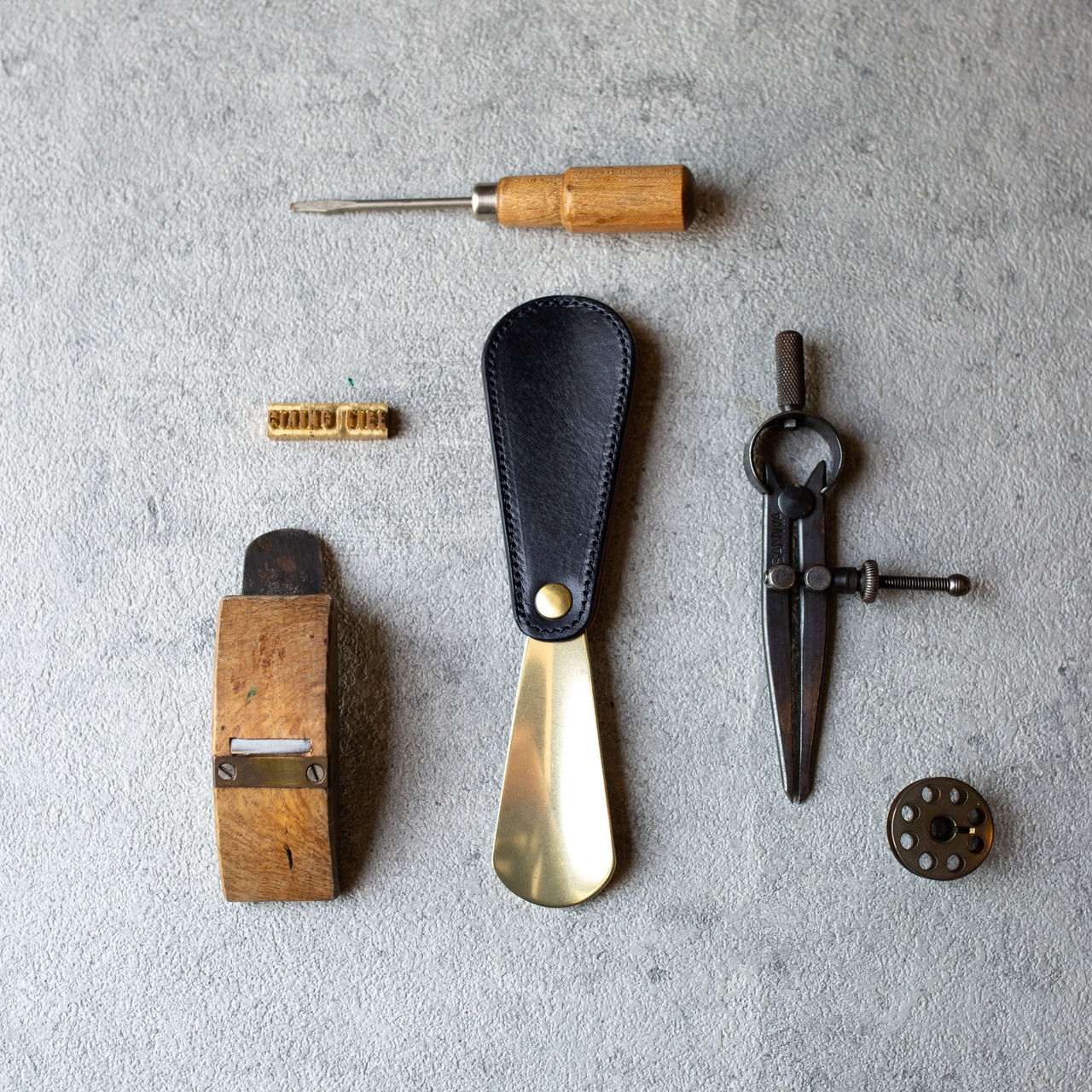 スーツのポケットにもスッポリ収まるコンパクトな靴べらです。