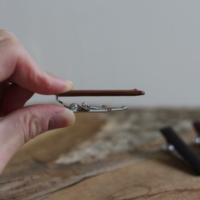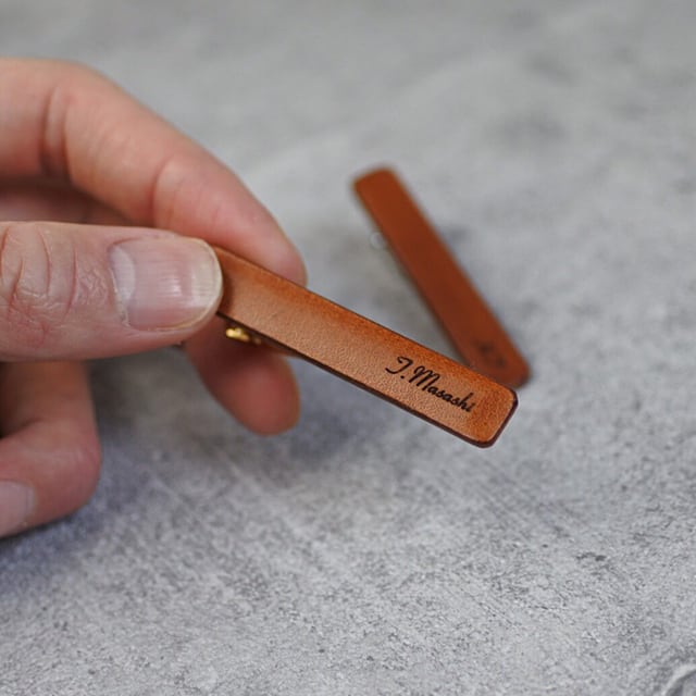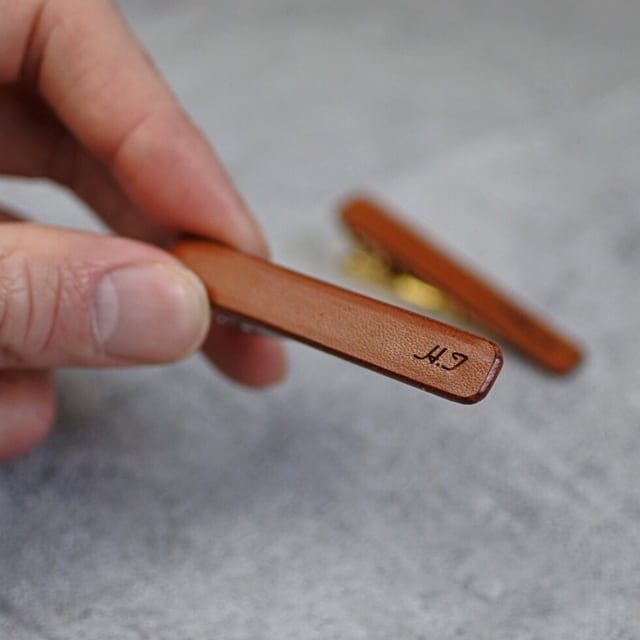 無機質な金属製ネクタイピンとは違い、イタリアンレザーの優しい革の質感を感じられるネクタイピンです。