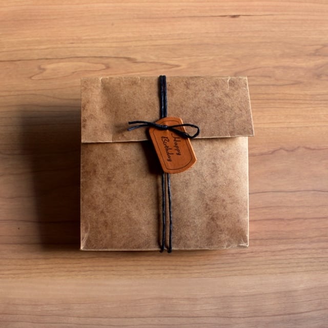 蝋引き加工のクラフト紙のビンテージ感のある材質と、深い色のペーパーリボンを合わせた手作り製品の温もりをそのまま閉じ込めたGIVING LIFEのオリジナルラッピングです。