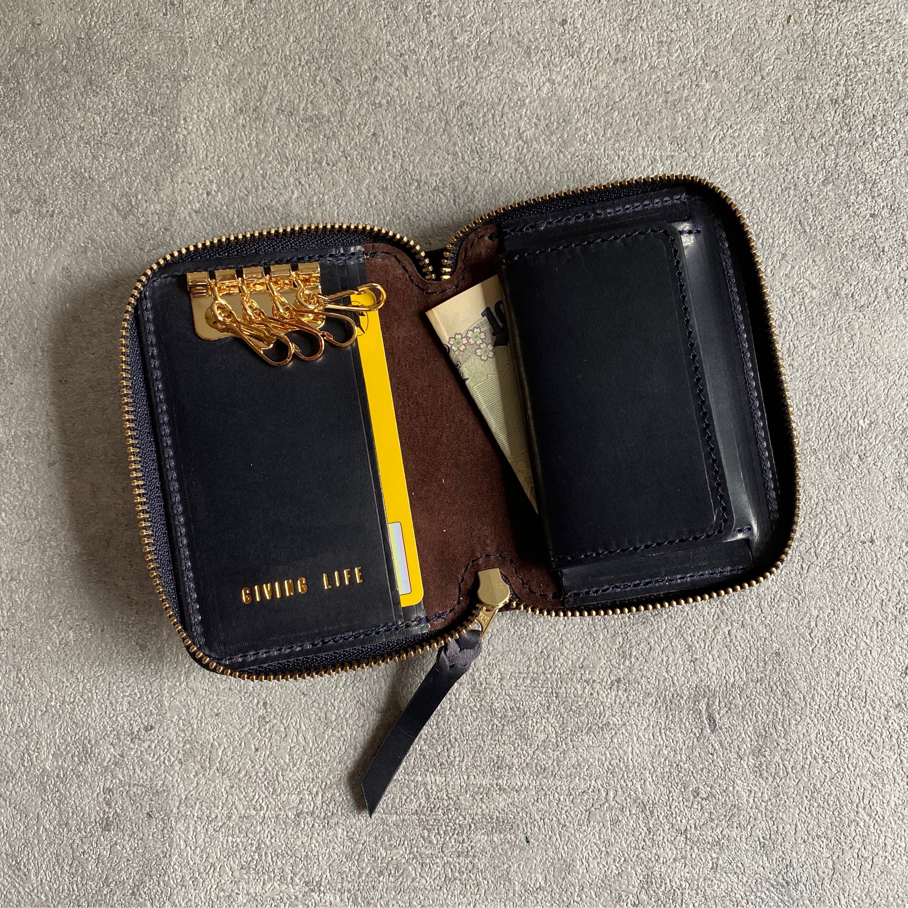 4連キー、小銭、カード収納可能で内側も外側の全面イタリアンレザーで贅沢に仕上げたラウンドファスナーのコンパクトキーケースです。
