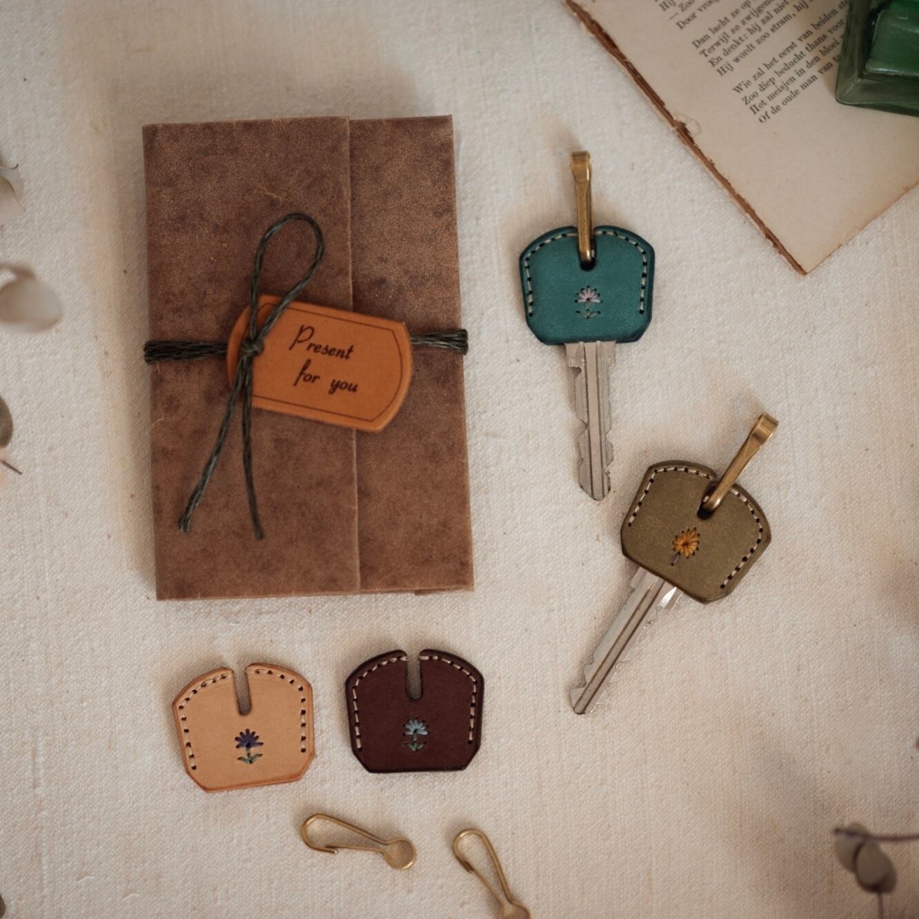鍵がたくさんあって迷ってしまう、そんな方にぴったりな革と刺繍の組み合わせで作るオリジナルのキーカバーです。