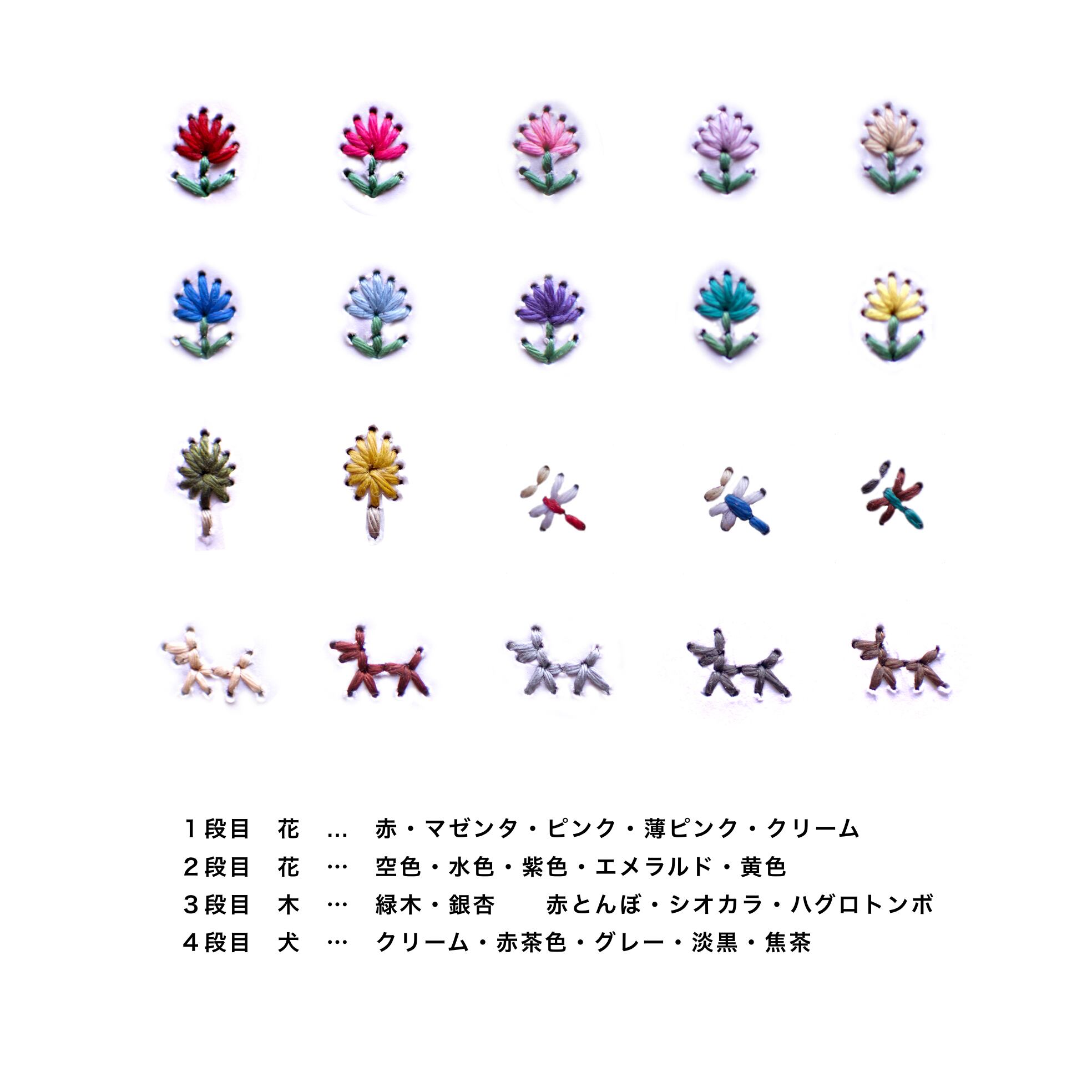 2段目 花 … 空色・水色・紫色・エメラルド・黄色