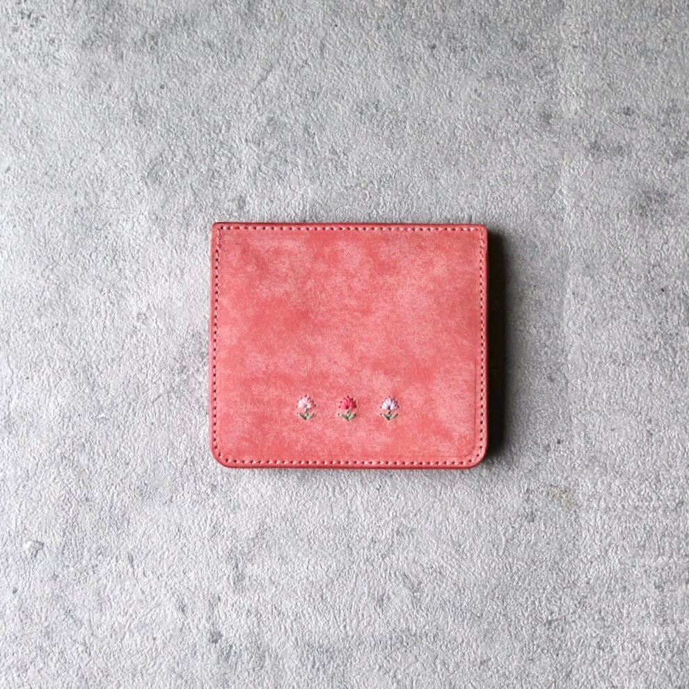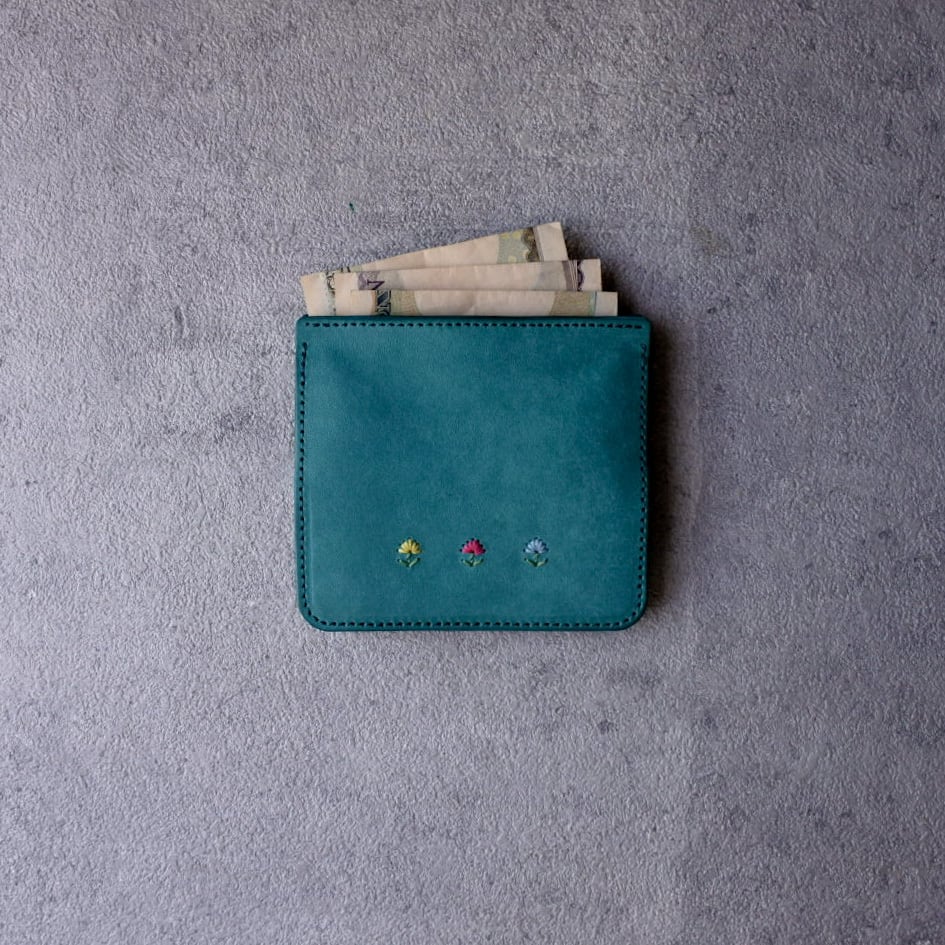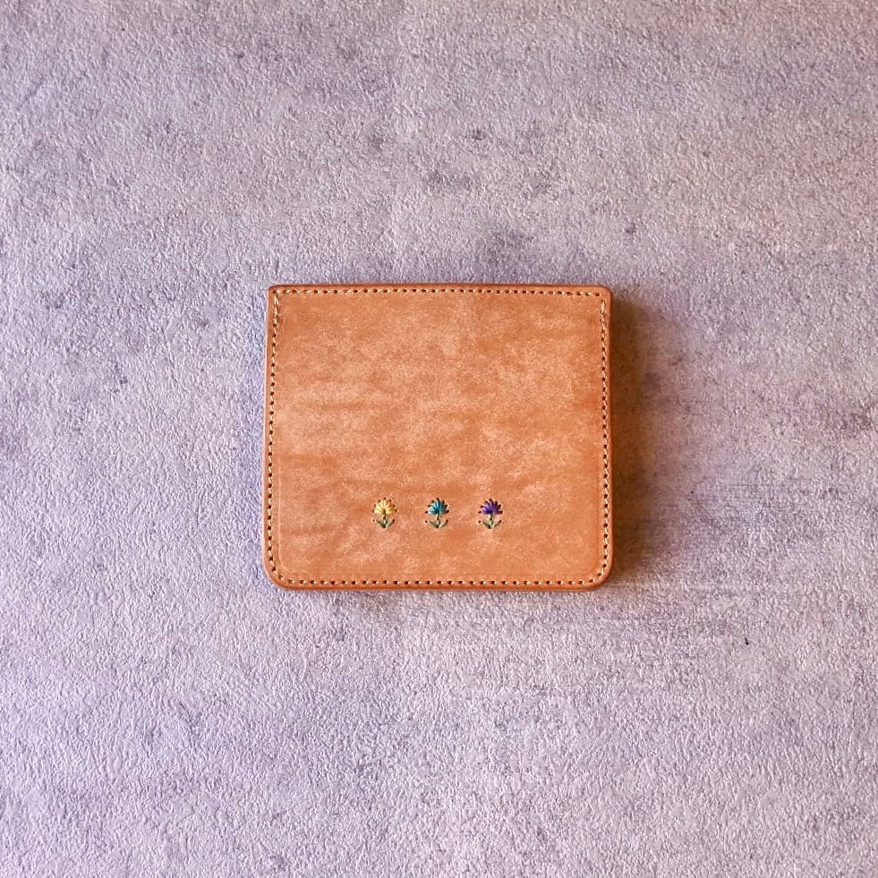 GIVING LIFEの職人による手描き風の刺繍が施されています。1つ1つに微妙な違いがあるため、自分だけのオリジナルとしてお使いいただけます。花の刺繍は革に1針ずつ穴お開けながら、ふっくらしてモコモコした質感の刺繍糸で一点一点手縫いで刺繍をしています。