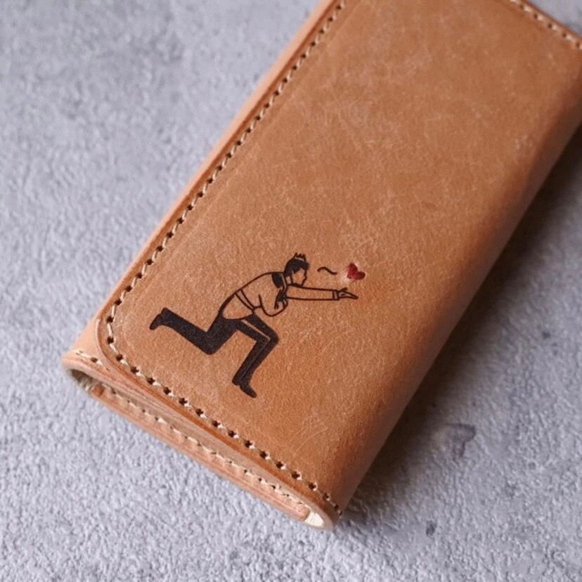 ハートの刺繍は革に1針ずつ穴お開けながら、ふっくらしてモコモコした質感の刺繍糸で一点一点手縫いで刺繍をしています。
