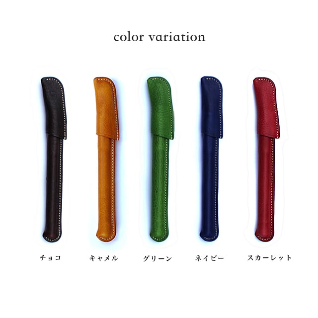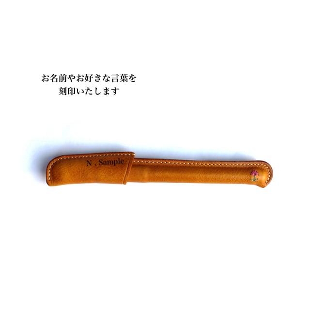 ナチュラルレザーの優しい質感の革の温もりとワンポイントの手縫いの刺繍がペンを握った時に笑顔にしてくれます。