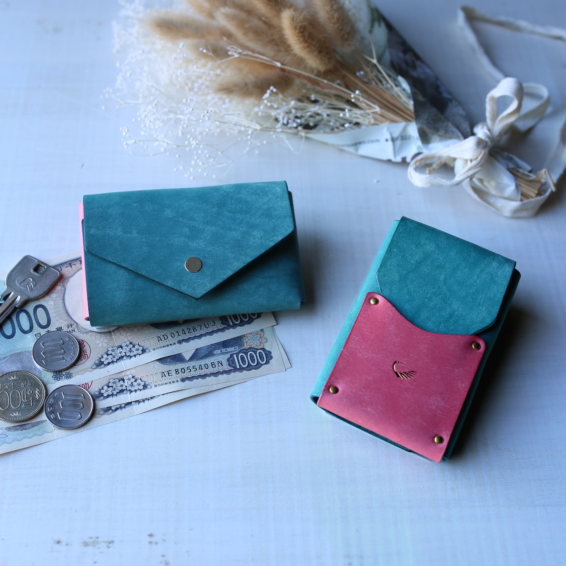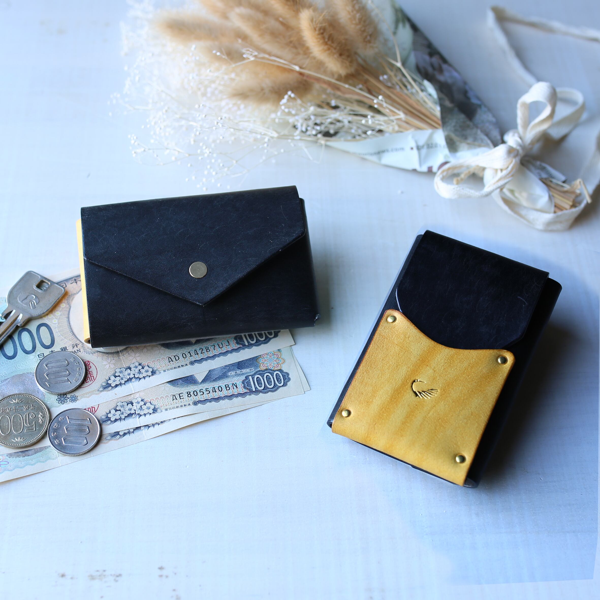 経年変化で浮き出る「アタリ」のデザインがコンセプトの、オールインワンのコンパクト財布”kamame”です。